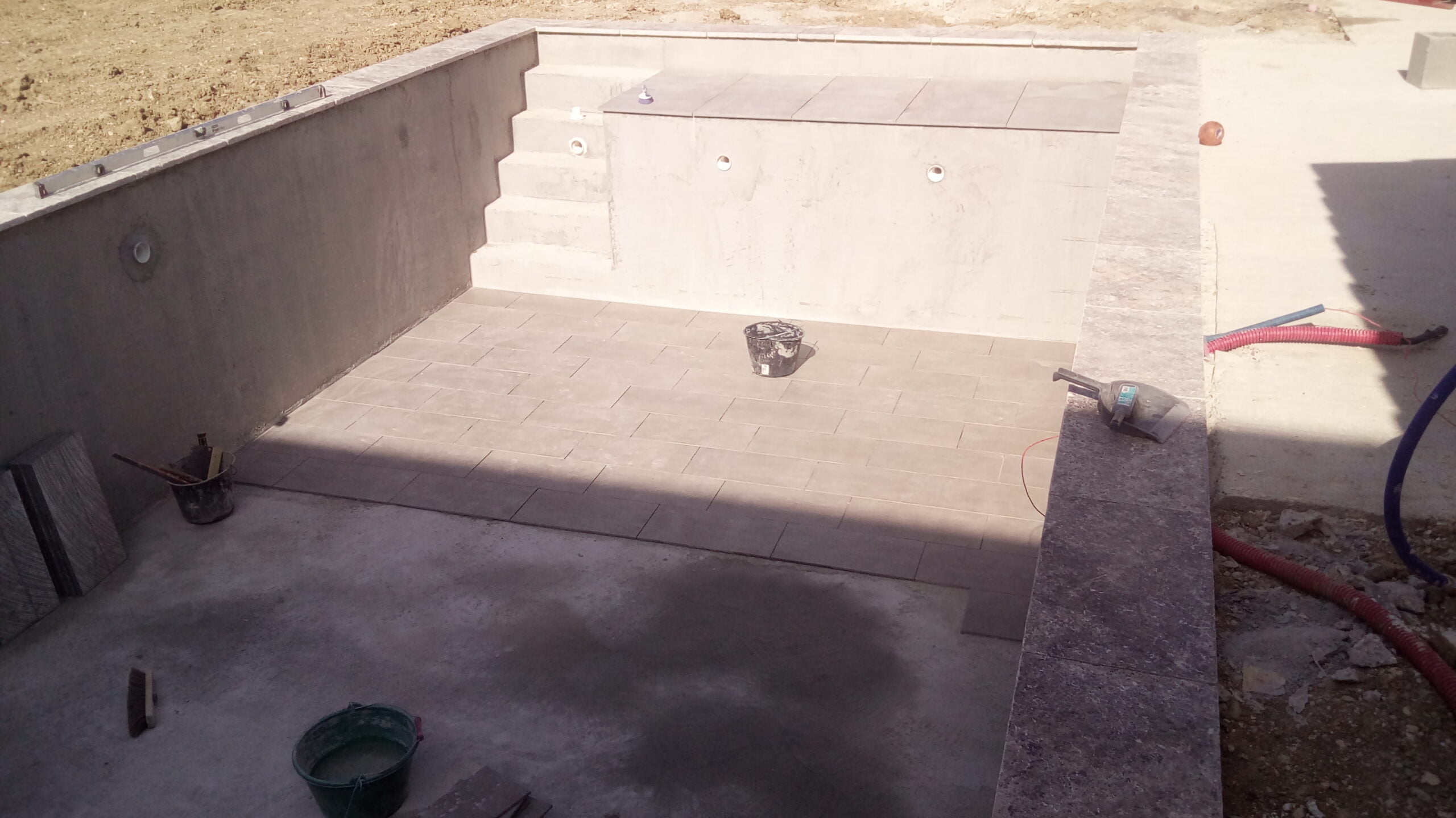 - Étape 3 : Construction de la structure en béton : Nous construisons la structure de votre piscine en béton en utilisant des techniques de construction de qualité pour garantir une solidité et une durabilité optimales.